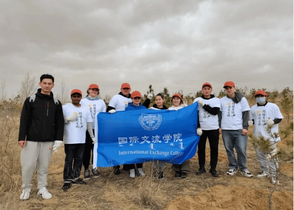 为深入践行"绿水青山就是金山银山"的生态文明理念,促进中外青年友好交流,4月13日,内蒙古自治区教育厅、自治区人民政府新闻办公室共同举办恩格贝生态示范区植树活动。我校来自蒙古、俄罗斯、老挝,孟加拉等4个国家的8名留学生参加本次活动。